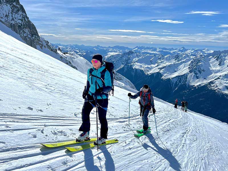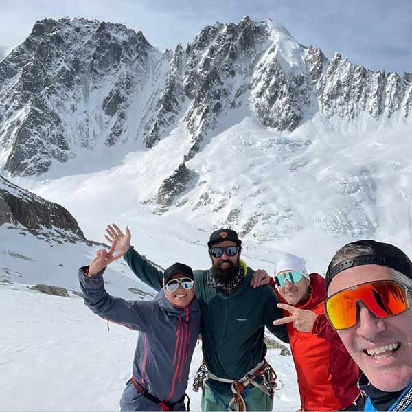 La cordée d’âmes unies par une passion commune, a laissé une empreinte indélébile dans la neige et sous les séracs suspendus (les glaçons !), grimpant avec détermination les pentes abruptes du glacier d’Argentière, et redescendant avec légèreté sous les arêtes acérées, baignés dans la douce lumière de l’instant.